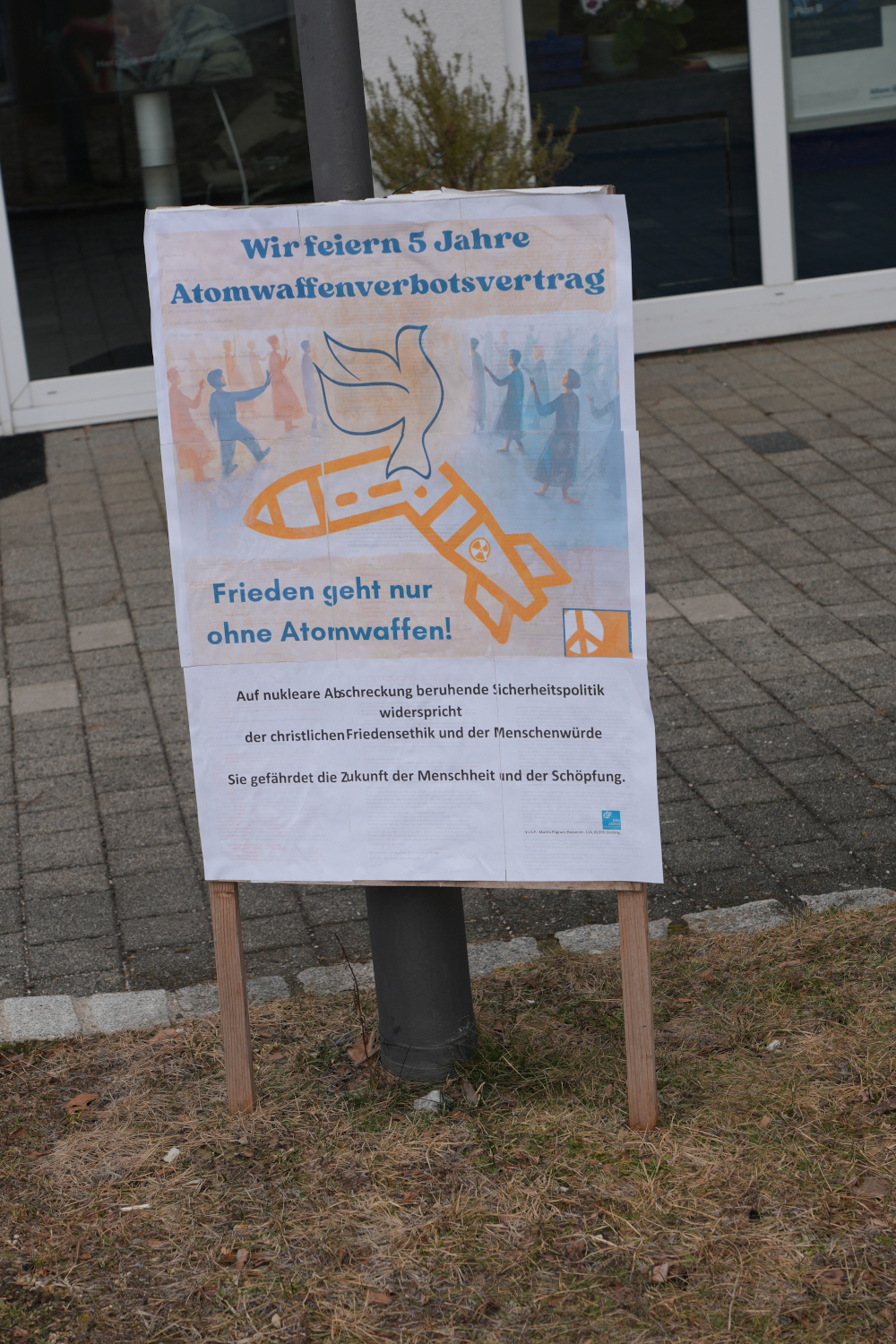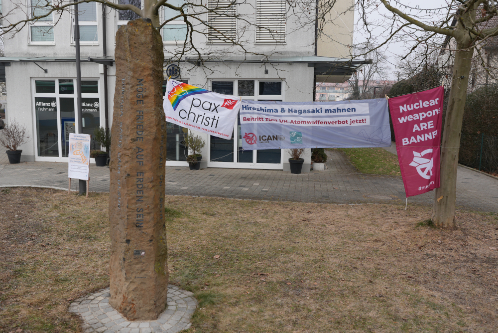 pax christi Gilching feiert das 5-jährige Jubiläum des Atomwaffenverbotsvertrages am Gilchinger Friedenspfahl