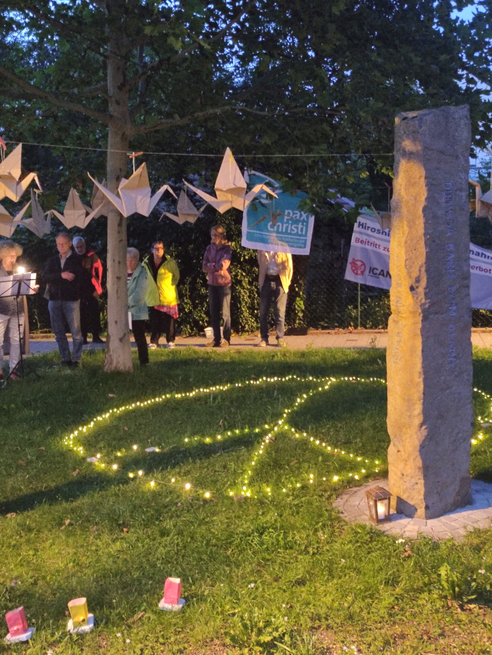 Die pax christi Gruppe Freising erinnerte mit einem ökumenischen Friedensgebet am 6. August am Freisinger Marienplatz für die Opfer von Hiroshima und allen aktuellen Kriegen. Am Tag des Atombombenabwurfes auf Nagasaki informierte sie zusammen mit ICAN an einem Stand in der Freisinger Innenstadt.